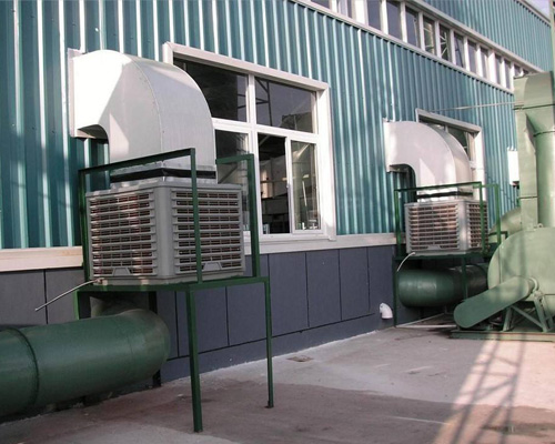 用循環(huán)水泵不間斷地把水箱內(nèi)的水抽出,并通過(guò)布水系統(tǒng)均勻地噴淋在蒸發(fā)過(guò)濾層上,室外熱空氣進(jìn)入蒸發(fā)降溫介質(zhì),在蒸發(fā)降溫介質(zhì)CELdek(特殊材料的蜂窩狀過(guò)濾層,讓降溫效果更理想,瑞典的高科技產(chǎn)品)內(nèi)與水充分進(jìn)行熱量交換,加水蒸發(fā)吸熱而降溫的清涼、清潔的空氣由低噪音風(fēng)機(jī)加壓送入室內(nèi),使室內(nèi)的熱空氣排到室外,從而達(dá)到室內(nèi)降溫的目的。